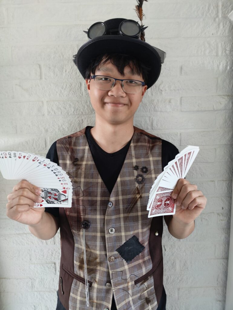 Hallo! Mijn naam is Goochelaar Quinn. Ik ben een gepassioneerde goochelaar en al twee jaar actief in het betoveren van jong en oud. Met veel energie, humor en een vleugje mysterie zorg ik ervoor dat elk optreden een unieke beleving wordt. Goochelen is voor mij meer dan een act – het is een manier om even te ontsnappen aan de werkelijkheid en mensen mee te nemen in een wereld vol verwondering. En dat gevoel wil ik ook aan u meegeven tijdens mijn shows. Laat u verrassen, lach, geniet – en geloof weer even in het onmogelijke.